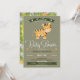 Invitación de Baby Shower del niño tigre, tema de la jungla de safari. Invite a mostrar características patrón de animales de safari en la parte posterior.