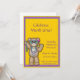 Invitación festiva para su fiesta Mardi Gras en oro con borde violeta y verde. El diseño presenta un oso de peluche adorable vestido con máscaras de Mardi Gras y cuentas. Fácil de personalizar con los detalles de su evento. Gráficos ©http://delightful-doodles.com