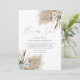 Boho y género moderno revelan la carta de invitación a la fiesta con acuarela de ilustracion de pasto pampas con flores rosas y azules. Perfecto para el sexo revela fiesta en el verano.