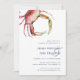 La invitación a la fiesta de compromiso de la moda costera incluye un ilustracion de cangrejo rojo color agua de estilo vintage, con los detalles de su fiesta de compromiso en azul marino clásico. Perfecto para las celebraciones de playa, verano o compromiso náutico, estas invitaciones de estilo costero se revierten a azul marino sólido.