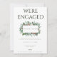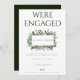 Esta impresionante tarjeta de Navidad follaje de la fiesta de compromiso de los pinos de la follaje incluye vegetación navideña con un marco dorado falso sobre un fondo moderno blanco y verde.