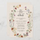 Esta elegante y elegante invitación a la boda incluye hermosas flores silvestres de acuarela pintadas a mano dispuestas como una hermosa corona perfecta para bodas de primavera, verano o otoño. Buscar elementos coincidentes en la colección de Bodas Boho Wildflower.