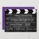Invitación de tablero de cartón púrpura para el partido de graduación listo para ser personalizado según sus especificaciones.
