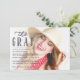 Sobreposición de escritura a mano Tarjeta fotográfica de invitación del Partido de Graduación con personalizable de patrón de chevron para los detalles del evento. La imagen de ejemplo tiene versión de modelo.