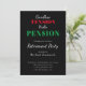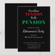 Esta invitación humorística dice, adiós tensión hola pensión. Con un signo de dólar como la carta, 's', está dirigido al mercado estadounidense. A sus huéspedes les encantará esta sencilla invitación con su tipografía audaz. En un fondo negro, aparecerá el texto blanco.