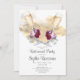 gafas de champán color agua de bonito y flores de color burdeos rosadas invitación a la fiesta de retiro. Elegante y bonito. Celebra el retiro con una invitación temática de brindis de champán.