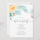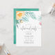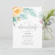 Invitaciones a fiestas de retiro floral floral de mentes, rosadas y amarillas con peonías, eucalipto, rosehips, succulantes, lisianthus, hojas de mentol y suculentas