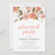 La Delicada invitación del Partido de la Jubilación Floral presenta un delicado patrón de puntos de polka floral y melocotón de color agua. Personalice esta invitación reemplazando el texto del marcador de posición de la plantilla para agregar su información. Para obtener más opciones, como cambiar el tipo de letra y su tamaño, haga clic en el botón "Personalizar". *Tenga en cuenta que la marca de agua Zazzle que aparece en la vista previa del zoom NO aparecerá en el producto impreso final. © Rosewood y Citrus