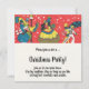 Invitación fácil de personalizar de la fiesta de Navidades. Ilustracion de época Navidades victorianos imagen de festividad que muestra a una elegante familia de fiestas vestidos con ropa elegante y sosteniendo regalos envueltos de Navidad. Están caminando por la nieve para asistir a un fiesta de Navidades con sus bufandas soplando en el viento.