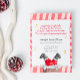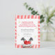 Navidades divertidos personalizado de fiesta de vacaciones invitación postal Diseño tradicional rojo y blanco con Santa pegado en una chimenea al frente de la invitación