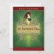 Esta es una manera divertida de invitar a tus amigos y familia a tu fiesta del Día de San Patricio. El fondo es verde con un borde superior e inferior en un color de grabación. En el centro hay un medallón de oro para enmarcar tu texto. En la parte superior hay un divertido ilustracion de una vaga cabeza roja con un vestido verde. En la parte trasera hay más espacio para texto adicional. Una invitación festiva divertida.