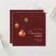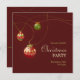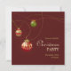 Plantilla de invitación de fiesta de Navidades/feriados con baubles de árbol de Navidad coloridos y cintas con fondo rojo oscuro. Personalízalo con tu propia información o haz clic en "Personalizar" si necesitas cambiar el diseño o elegir un tamaño de invitación diferente.