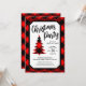 Una invitación festiva de Navidades con un borde de manto de búfalo y la silueta de árbol coordinadora.