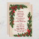 Hermosas hojas de color verde oscuro adornadas con bayas enmarcan las esquinas de esta hermosa y festiva invitación a fiestas de vacaciones. El fondo se parece a un pergamino antiguo y el centro dispone de mucho espacio para el texto.