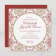 Esta elegante invitación a la fiesta de Navidades de copos de nieve rojos y dorados es perfecta para una celebración formal.