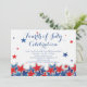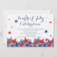 Empiece su cuarta celebración de julio con nuestra invitación de fiesta moderna a las estrellas y rayas rojas, blancas y azules americanas. Nuestro fiesta barbacoa del día de la independencia cuenta con un borde inferior de estrellas rojas, blancas y azules sobre un fondo blanco y fresco. Invierta nuestra invitación del 4 de julio para ver la correspondencia para un toque especial. Una invitación popular para un cuarto de julio fiesta de piscina, barbacoa, fiesta de fuegos artificiales, cocina o fiesta de cumpleaños 4 de julio.