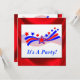 Estrellas patrióticas rojas, blancas y azules y rayas únicas diseño gráfico festivo con "It's A Fiesta" en la parte delantera de esta divertida invitación. Personalice la parte posterior con su información. Cambie fácilmente el texto, el estilo de texto y el color. Una invitación divertida y única para muchas celebraciones, reuniones, cumpleaños, etc. Los colores de fondo coincidentes de rojo y blanco realzan el aspecto único de esta atractiva invitación fiesta. Ideal para los próximos fiestas y eventos de las elecciones políticas, y festividades como el 4 de julio u otros festivales patrimoniales estadounidenses y ocasiones especiales.