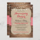 Cambie el texto para que se ajuste a su Fiesta de aniversario. Esta rústica invitación a la madera y al taco rojo es la combinación perfecta para un ambiente romántico y elegante. Impresión trasera incluida