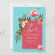 Establezca el tono de su fiesta con esta vibrante invitación tropical. Con un bonito azul azur y una llamativa rosa con toques de oro, puedes personalizar con tus detalles. También disponible como descarga.