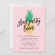 Invite a amigos y familiares a su luau de graduación con divertidas invitaciones para la fiesta de graduación. Las invitaciones a la fiesta de graduación incluyen una piña acuarela, fondo rosado, letra de guión de moda, marcadores de posición para el texto personalizado y un audaz patrón de punto blanco y negro en la parte posterior de la invitación.