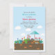 Un ajuste maravilloso para un fiesta - el patio con plantadores florecientes y un paraguas para la sombra. Incluido en esta invitación con una división del ladrillo. Perfeccione para el alumerzo de una mujer, la fiesta de cumpleaños, la ducha, el aniversario y más.