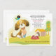 Esta invitación linda es perfecta para la celebración del cumpleaños de un niño. Ofrece un perrito, su caseta de perro, un hueso en un plato y un pájaro que gojea encaramado en la cabeza del perrito. La tarjeta es fácil de modificar para requisitos particulares con su fraseología, fuente, color de la fuente y opción de seis tipos de papel.