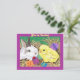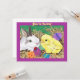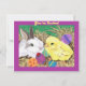 Invitación con la pintura digital del arte de un conejito y polluelo con los huevos de Pascua