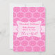 It's a Girl! Esta elegante invitación a los damascos rosas es una gran ducha de bebé chica. Sofisticada y caprichosa, esta invitación se caracteriza por un damasco rosado caliente sobre un fondo rosa claro y de diseño. Un motivo rosa claro se sienta en una franja rosa claro y proporciona un espacio para personalizar. Personalizar la parte posterior con la fecha, lugar, RSVP y tiendas registradas. El fondo de la parte trasera también es el diseño adamascado rosa con el emblema de mayor tamaño para los detalles y la información de la ducha. Personalizable completo para su fiesta de ducha. Este patrón de damasco es arte original de Phyllis Dobbs y se coordina con otros productos de esta tienda.