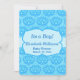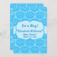 It's a Boy! Esta elegante invitación azul damasco es una gran ducha de bebé. Sofisticada y caprichosa, esta invitación tiene un damasco azul sobre un fondo azul turquesa en capas. Un motivo azul claro se sitúa en una franja azul claro y proporciona un espacio para Personalizar. Personalizar la parte posterior con la fecha, lugar, RSVP y tiendas registradas. El fondo de la parte trasera también es el diseño adamascado, con el emblema de mayor tamaño para los detalles y la información de la ducha. Personalizable completo para su fiesta de ducha. Este patrón de damasco es arte original de Phyllis Dobbs y se coordina con otros productos de esta tienda.