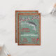 Invitación a la fiesta de pescados rústicos de estilo poster. Un pez grande se pone el anzuelo contra un viejo papel verde descolorido sobre un fondo de grano de madera. ¡Ideal para cumpleaños, jubilaciones, reuniones familiares, recaudaciones de fondos o cualquier evento que salve los peces!