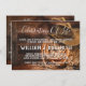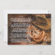 Invitación en el funeral de Cowboy con un rústico gorra de vaquero y cuerda sobre un suelo de heno y fondo de madera. Esta invitación del servicio conmemorativo de vaqueros tiene espacio para el texto de su elección en la parte delantera, y usted puede poner un poema u otro texto en la parte trasera.