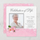Elegante festejo de flores de cerezo rosa de invitaciones de servicio de memorial de vida, invitación e insertar plantilla. Esta invitación al servicio funerario de mujeres con foto rosa bonito se personaliza fácilmente para tu evento simplemente eligiendo el botón "Personalizar it!" para empezar a añadir los detalles del evento, estilo de fuente, tamaño y color del tipo de letra, y redacción. Por favor, tenga en cuenta que todos los pegatinas, tarjetas y diseños de invitación que encontrarás en Zazzle son gráficos impresos sin joyas, arcos, arcos, grabados en relieve, o piezas o piezas añadidas.