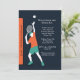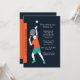 Una invitación del deporte-tema para el cumpleaños de un entusiasta del tenis. La tarjeta ofrece a un jugador de tenis de sexo masculino alrededor para servir la bola. El naranja intrépido, el trullo y los colores blancos saltan contra el fondo negro.
