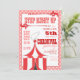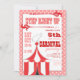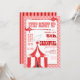 ¡Huéspedes de recepciones de un diseño de la diversión a caminar a la derecha para arriba para el acontecimiento principal! Ofreciendo una tienda de circo rayada roja y blanca brillante rematada con un elefante de equilibrio esta invitación contiene todo el acontecimiento Info en un fácil modificar formato para requisitos particulares. ¡Una gran manera de construir el entusiasmo de sus huéspedes pues anticipan el carnaval o la celebración temática del cumpleaños del circo que se planea para su hija!