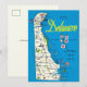 A colorful vintage postcard map of the State of Delaware repurposed as a new 5x7 postcard!