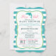 It's a Girl! Elegante ducha de bebé delfín azul turquesa de agua, con rayas verticales, y resaltado rosa con un aspecto formal vintage. Ideal para chicas acuáticos acuáticos acuáticos acuáticos y duchas para bebés. Invitación de forma de corchete retro.