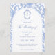 Invitación Delft Blue Floral Chinoiserie Monogram Wedding