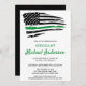Invitaciones de retiro militar de la delgada línea verde o invitaciones de fiesta de despedida militar. Estas invitaciones de fiesta del ejército de la delgada línea verde son perfectas para una jubilación militar, despedida de despliegues militares, celebración de bienvenida militar, graduación militar y fiesta de despedida de soldados. La bandera de la delgada línea verde representa a todos los militares, ejército, protección fronteriza, patrulla fronteriza, oficial de conservación, guardabosques, guardia de caza,执法 federal. Personalice esta invitación de bandera militar con el evento de su soldado, nombre y detalles de la fiesta.