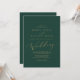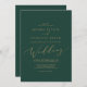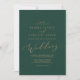 Esta delicada tarjeta dorada caligrafía verde es perfecta para un boda moderno. El romántico diseño minimalista presenta una encantadora y elegante tipografía de champán amarillo dorado sobre un fondo verde esmeralda con un aspecto limpio y sencillo.