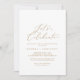 Esta delicada caligrafía de oro celebremos que la invitación es perfecta para una moderna fiesta de compromiso, boda tras fiesta, retiro, graduación o cualquier evento feliz. El romántico diseño minimalista presenta una encantadora y elegante tipografía de champán amarillo dorado sobre un fondo blanco con un aspecto limpio y sencillo.