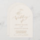Invitación Delicada caligrafía de oro Cream Boho Arch Boda