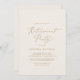 Esta delicada invitación a la fiesta de retiro de la caligrafía dorada es perfecta para un evento moderno. El romántico diseño minimalista presenta una encantadora y elegante tipografía de champán amarillo dorado sobre un fondo de marfil crema con un aspecto limpio y sencillo.
