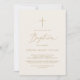 Invitación Delicada caligrafía dorada Crema Cross Baptism