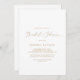 Esta delicada caligrafía dorada de la ducha de novia es perfecta para una moderna ducha de boda. El romántico diseño minimalista presenta una encantadora y elegante tipografía de champán amarillo dorado sobre un fondo blanco con un aspecto limpio y sencillo.