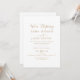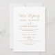 Invite a sus seres queridos a celebrar su unión con esta elegante invitación de recepción de elopamiento. Con sofisticada caligrafía en dorado champán sobre un fondo blanco crujiente, este diseño minimalista emana romance moderno y encanto atemporal. Las tarjetas de RSVP están disponibles por separado, o puede incluir detalles de RSVP en el reverso de la tarjeta.