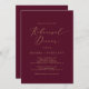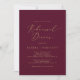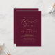 Esta delicada cena de oro y burdeos es perfecta para un ensayo boda moderno. El romántico diseño minimalista presenta una encantadora y elegante tipografía de champán amarillo dorado sobre un fondo rojo burdeos con un aspecto limpio y sencillo.