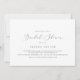 Esta delicada ducha de novia horizontal plateada es perfecta para una moderna ducha de boda. El romántico diseño minimalista presenta una bonita y elegante tipografía de color gris plateado sobre un fondo blanco con un aspecto limpio y sencillo.