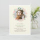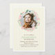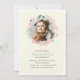 Estas adorables invitaciones cuentan con un elegante ilustracion de una corona floral con hermosos colores pastel sobre un delgado fondo de rayas verticales y pueden ser personalizadas con su foto y texto personalizado.