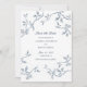 Delicada, única y elegante, la boda ahorra la tarjeta de fecha enmarcada por un pájaro toil francés azul y blanco en las ramas de los árboles.