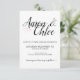 Esta delicada invitación a la boda de caligrafía negra minimalista es perfecta para un boda moderno. El diseño minimalista presenta una bonita y elegante tipografía negra sobre un fondo blanco suave con un aspecto limpio y sencillo. Diseñar completamente personalizable.